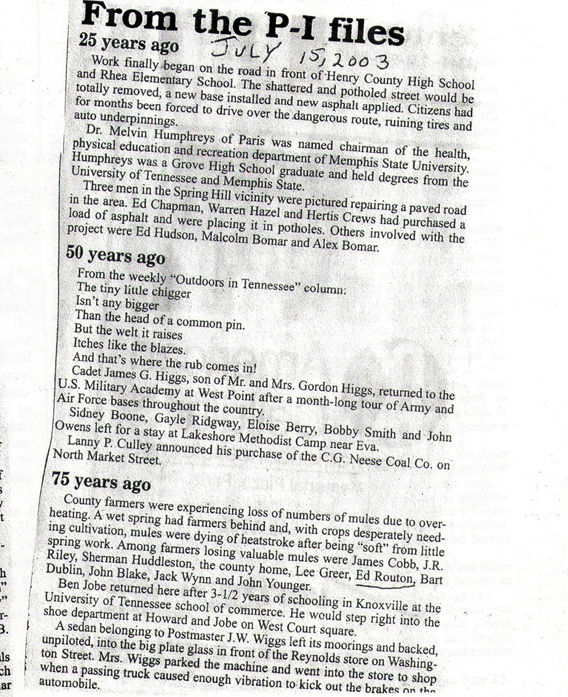 appeared and told of Mrs. Routon’s kindness toward him during the depression of the 1930’s. After teaching the lad how to read and write, she footed the bill for his wedding in 1935 (he was 17) then cared for his wife during the birth of a child.